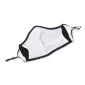 Reusable face mask made of 2 layers of material. 100% Cotton Outer Layer, 96% Polyester/4% Spandex Inner Layer. One size fits all. Integrated metal nose frame. Interior filter pocket. Elastic straps with an adjustable toggle. Soft lining. Wash and dry before use. Wash routinely. Hand wash or machine wash cold, gentle cycle. Mask is not medical grade or a direct substitute for N-95, surgical, or procedural masks and should NOT be used as a replacement for approved PPE. Complies with CPSIA, Prop 65. 5.75" H x 8.75" L