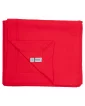 8 oz. sqyd, 50% USA cotton, 50% polyester; Yarn count 20/1; Two-end midweight fleece fabric; Hemmed sides all around; 50" W x 60" L; Tear away label;