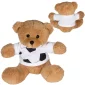 Adorable brown plush bear wearing GameTime!® sport themed t-shirts. Available in your choice of Football, Baseball, Basketball, and Soccer sport ball stock art. GameTime!® sports stock art comes pre-printed on the front of each shirt, add your logo to complete the message. Teddy bears feature logo on the t-shirt only. No decoration available directly on the plush animals. Complies with ASTM, Prop 65. 7.75" W x 7" H x 5.75" D