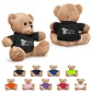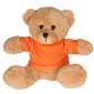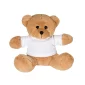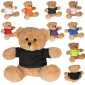 This is a adorable brown plush bear available in your choice of 9 t-shirt colors. Teddy bears feature logo on the t-shirt only. No decoration available directly on the plush animals. Surface washable only. T-shirts are 100% polyester. Toy safety tested to ASTM F963 specification. Complies with ASTM, Prop 65. 7.75" W x 7" H x 5.75" D