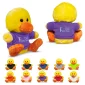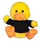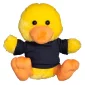 This adorable yellow plush duck is available is in your choice of 9 t-shirt colors. Our plush toys feature the logo on the T-shirt only. No decoration is available directly on the plush animals. Ducks are made of polyester plush with plush fill, and super soft orange Velboa beak and flippers. The T-shirts are made of 100% polyester. Complies with ASTM, Prop 65. 7" W x 7" H x 2.4" D