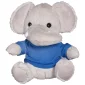 This adorable gray plush elephant is available is in your choice of 9 t-shirt colors. Our plush toys feature the logo on the T-shirt only. No decoration is available directly on the plush animals. Complies with ASTM, Prop 65. 6" W x 7.5" H x 4.5" D