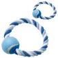 Circlet Rope Ring & Ball Pet Toy is made of cotton rope and durable rubber and polyester ball. Features a ring handle on one end for you and a tennis ball on the other for pup. Great for energizing games of fetch and loads of interactive play. Fun for you to throw, your dog to fetch or play tug of war. Complies with Prop 65. 6.5" L x 2.5" W x 7.25" H