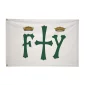 Travel back in time and capture an important moment with these single-sided nylon flags. Stock artwork is printed on 200 denier nylon. Your artwork will be visible on one side of the flag only; reverse image is visible through the back of the flag. Finished with canvas heading and brass grommets. Four rows of lock stitching on the fly end. Custom sizes available (call for quote; restrictions may apply). Complies with Prop 65. 36" W x 24" H