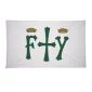 Travel back in time and capture an important moment with these single-sided nylon flags. Stock artwork is printed on 200 denier nylon. Your artwork will be visible on one side of the flag only; reverse image is visible through the back of the flag. Finished with canvas heading and brass grommets. Four rows of lock stitching on the fly end. Custom sizes available (call for quote; restrictions may apply). Complies with Prop 65. 120" W x 72" H
