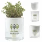 This simple passive hydroponic system provides the perfect amount of water to your plant, ensuring you never over-water or under-water. Each planter set includes a ceramic planter, a glass water reservoir, 2 hydroponic wicks, a seed packet, and 2 coconut coir pellets packaged in an informative brown kraft box. To keep the plant properly hydrated, simply pour water into the glass reservoir whenever the water levels become low. Complies with CCPSA, Prop 65. 3 5/8" W x 4 1/4"" H