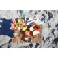 This low-profile table is the perfect place to set wine glasses, a bottle, a charcuterie, or lunch for two. Complies with CPSIA, Prop 65. 4.5" W x 8.5" H x 16" L