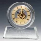 Flawless optical crystal is cut and polished in this unusual contemporary form that will compliment any decor. The gold tone skeleton movement gives the sense that the clock is floating in space. 6.0" H x 1.5" D