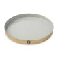 Whether you're setting the table or simply seeking an elegant pop of color, this stylish selection of ethically crafted enamel round trays will do just the trick. Illuminated by their unmistakable gold halo, each of these vibrant little beauties was expertly assembled by hand using sustainable materials whenever possible. Ethically crafted in small batches. CARE INSTRUCTIONS: Hand wash with mild soap. Complies with CPSIA, Prop 65. 1.25" H x 12" L