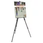 Display announcements, artwork, sign frames, light boxes and more with this versatile and durable easel. Aluminum construction with black, powder-coated finish. Extendible legs allow for use as a table display or standalone floor display. Tripod structure for easy placement in corners. Accommodates rigid signboards, light boxes, artwork and sign frames. Easel holds up to 20 lbs. Carry case included. One-year warranty. Complies with Prop 65. 16" L x 20" W x 72" H