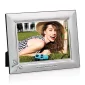 Give a gift of remembrance with this embossed chrome ribbon and bow that artfully surround the pillowed satin metal surface of the Annabelle frame creating a beautiful medley of rich silver tones. 8.75" W x 6.75" H