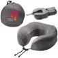 Rest easy with our Snuggle Memory Foam Neck Pillow! Features an ergonomic u-shaped plush polyester shell with memory foam that has a pillow clasp and tightener for perfect fit. Pillow collapses into its own soft self-attached draw-cord pouch with a loop on pillow to hang and store. Showcase your branding on the carrying pouch. Complies with Prop 65. 7.25" L x 4.5" W x 8" H