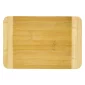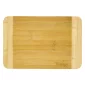 Crafted out of durable, eco-friendly Bamboo. Ideal for chopping, preparing, and serving. Features two tone color design with lighter colored side accents. Hand wash recommended. Due to the natural variations in wood, boards can vary in color and pattern. 11.75" D x 7.875" W x 0.5" H