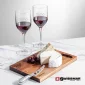 Embrace the art of pairing with this beautiful cheese board and wine glass set! The Swissmar Acacia Cutting Board is made from 100% dark acacia wood and includes a stainless steel knife for semi-soft cheese. Also includes two wine glasses. Available in other wine glass styles. Packaged in a black satin-lined presentation gift box.