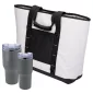 Features the Urban Peak® 20 oz Trail Tumbler (SL234PR) and 30 oz Trail Tumbler (SL235PR) packaged inside the Urban Peak® Padded Tote Bag (BG368). Tote bag constructed of rugged waterproof 55C PVC Mesh Tarpaulin. Drinkware features Stainless Steel, double-wall, copper-lined vacuum-insulation with a powder-coat finish. 1-year limited warranty. 20 oz SL234PR and 30 oz SL235PR Patented. 8" D x 18" W x 16" H