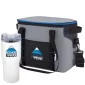 Features the Urban Peak® 20 oz Trail Vacuum Tumbler (SL234PR) packaged inside the Urban Peak® Waterproof 12 Can Hinge Cooler (CB161). Cooler bag constructed of rugged waterproof 55C PVC Mesh Tarpaulin. Drinkware constructed of Stainless Steel, double wall copper-lined vacuum insulation with powder-coat finish. 1-year limited warranty. SL234PR 20 oz Patented. 6.75" D x 12" W x 9.5" H