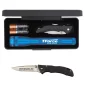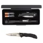 Two great brand names in one set. The world-famous 2 "AA" LED mini MagLite® paired up with one of Buck's® most popular knives. The MagLite® is 6 1/2" long and the Buck® knife has a 3 3/4" handle with a 2 3/4" stainless steel blade. Comes with 2 "AA" batteries and packaged in a beautiful presentation box. (Please specify "AA" mini LED MagLite® color). Both items made or assembled in U.S.A. Complies with Prop 65. 6 1/2" L