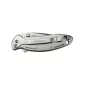 All knives are made of 420HC stainless steel, 2 7/8" handle and 1 15/16" blade. This knife comes with Kershaw's® patented SpeedSafe® assisted-opening system. Speedsafe® assists the user to smoothly open the knife with a manual push on the blade's thumb stud or index-open system. Comes with removable pocket clip and tip safety lock to prevent opening when knife is closed and boxed. Complies with Prop 65.
