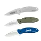 All knives are made of 420HC stainless steel. 3 1/2" handle, 2 1/4" blade. These knives come with Kershaw's patented Speedsafe ® assisted-opening system. Comes with removable pocket clip and tip safety lock. Boxed. Complies with Prop 65.