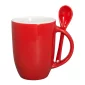 This 12 Oz. (354 mL) ceramic mug features a colored exterior and a matching spoon (all have white interior). This product is for use with hot and cold beverages. The spoons ship in bulk separately from mugs. Ceramic spoon measures approximately 4.56"l x 1"w. Up to 2 colors is available for pad printing. Reduced imprint area for multi-color orders: 1.75"w x 1.25"h. The dimensions include the handle. Complies with Prop 65. 4.31" H x 4.5" W