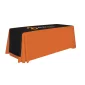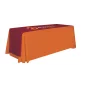 This table runner drapes across the width of the table so it won't cover a design or logo printed on the front of your table throw. 125" x 28". Polyester poplin fabric. Flame retardant treated (FR rated for exhibit halls). Machine-washable and wrinkle-resistant; do not dry clean and do not iron. Table throw sold separately. Complies with Prop 65. 125" W x 28" H