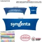 24 Hr Express Ship - Sublimated Stretch Curved Fit Table Throw for 8ft table, 3 sided, Open Back