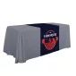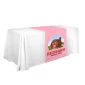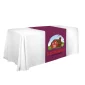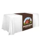 This stylish runner lets you add a logo or design to any table. It can be draped over a bare table or paired with a table throw to create a multilayered look. 28" wide. Constructed of polyester poplin. Flame retardant treated (FR rated for exhibit halls). Machine-washable and wrinkle-resistant; do not dry clean and do not iron. One-year product warranty. Complies with NFPA, Prop 65. 28" W x 80" H