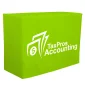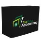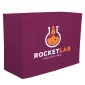 This throw is designed to fit snugly around tables. Its taut surfaces and sharp lines give it a tailored look that stands out at meetings, shows, career fairs and more. For use with tables 4' wide. Tight, fitted look. Covers four sides of the table. Constructed of polyester poplin fabric. Flame retardant treated (FR rated for exhibit halls). Machine-washable and wrinkle-resistant; do not dry clean and do not iron. One-year product warranty. Complies with NFPA, Prop 65. 24" L x 48" W x 36" H