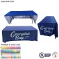 48 Hr Quick Ship - Sublimated PREMIUM Cloth for 6' Table, Drape Style, Open Back, Rounded Corners