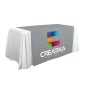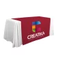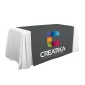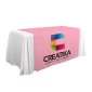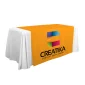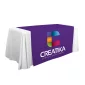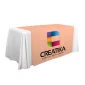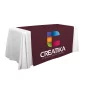 This stylish runner lets you add a logo or design to any table. It can be draped over a bare table or paired with a table throw to create a multilayered look. 57" wide. Constructed of polyester poplin. Flame retardant treated (FR rated for exhibit halls). Machine-washable and wrinkle-resistant; do not dry clean and do not iron. One-year product warranty. Complies with NFPA, Prop 65. 57" W x 80" H