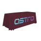 These cost-effective throws are laser-cut for a crisp, finished edge. Heat-treated edges will not fray or unravel. Printed on polyester poplin. Draped corners. Machine-washable and wrinkle-resistant. Flame retardant treated (FR rated for exhibit halls). Complies with Prop 65. 30" L x 72" W x 28" H