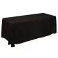 Value Lite table throws provide a cost-effective option for when large quantities are needed. Covers four sides of the table. Draped corners. Lightweight, 100% woven polyester pongee fabric. Available in four fabric colors. Short-term use only. Minimum order quantity of 25. One-month product warranty. Complies with Prop 65. 30" L x 72" W x 28" H