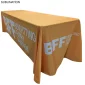 This product will ship in 3 business days if program requirements are met. Proofs not available. Accuracy of the artwork is the customer's responsibility. Premium Fabric, Premium Cut, Rounded Edges so it flows better on the corners. 1 piece of fabric (instead of 2 pieces sewn together). Four-sided table cover creates a lasting impression. Simple storage. Closed back makes it easy to hide materials underneath table. This table cloth will fit a standard 8' table. Compliant with flame retardants. 152" W x 86" L
