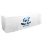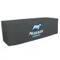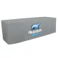 This throw is designed to fit snugly around tables. Its taut surfaces and sharp lines give it a tailored look that stands out at meetings, shows, career fairs and more. For use with tables 8' wide. Tight, fitted look. Covers four sides of the table. Constructed of polyester poplin fabric. Flame retardant treated (FR rated for exhibit halls). Machine-washable and wrinkle-resistant; do not dry clean and do not iron. One-year product warranty. Complies with NFPA, Prop 65. 30" L x 96" W x 29" H