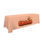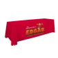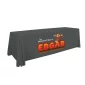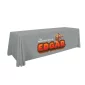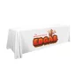 These cost-effective throws are laser-cut for a crisp, finished edge. Heat-treated edges will not fray or unravel. Printed on polyester poplin. Draped corners. Machine-washable and wrinkle-resistant. Flame retardant treated (FR rated for exhibit halls). Complies with Prop 65. 30" L x 96" W x 28" H
