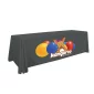 Our most popular table throw is elegant in its simplicity. For use with tables 8' wide. Covers four sides of the table. Draped corners. Constructed of polyester poplin. Flame retardant treated (FR rated for exhibit halls). Machine-washable and wrinkle-resistant; do not dry clean and do not iron. One-year product warranty. Complies with NFPA, Prop 65. 152" W x 86" H