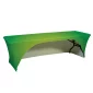 This form-fitting throw is an attractive option for promoting your brand. It stretches to fit tightly around tables, creating a crisp, refined appearance. For use with tables 8' wide. Tight, form-fitting look with an open back for legroom and easy access to storage. Two-way stretch fabric. Flame retardant treated (FR rated for exhibit halls). Machine-washable and wrinkle-resistant. One-year product warranty. Complies with Prop 65. 30" L x 96" W x 29" H