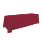 Value Lite table throws provide a cost-effective option for when large quantities are needed. Covers four sides of the table. Draped corners. Lightweight, 100% woven polyester pongee. Available in four fabric colors. Short-term use. Minimum order quantity of 12. One-month product warranty. Complies with Prop 65. 30" L x 96" W x 28" H