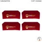 Three-sided table cover creates a lasting impression. Open back makes it easy to store materials underneath table. Lightweight, convenient for travelling and shipping. This table cloth will fit a standard 6' table. Keep the main logo the same. Change faculty or department names. 100% Polyester. Machine washable and wrinkle resistant. Compliant with flame retardants for exhibit halls. Price includes full color sublimation. Usage: Schools, University, Hospitals. 132" W x 60" L