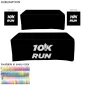 Outdoor Use Box style, closed back table cover. Box Style makes it possible to be used outdoors against elements like wind. This tablecloth won't blow away outdoors like a drape style would. Ideal for outdoor events like Runs, Marathons, Golf tournaments, Registration Desk, Sponsorship Desks. Closed back makes it easy to hide materials underneath table. This table cloth will fit a standard 6' table. 72" W x 30" L x 29" H