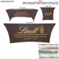 NEW Premium Fabric used as of July 11, 2024. Our New premium weight is 260gsm with upgraded finishing. This form-fitting throw has a clean look to it and is the perfect option for promoting your brand. It stretches to fit tightly around tables, creating a crisp, refined appearance. New pattern for the Open Back gives this tablecloth a fresh, appealing look. Stand out from the competition at tradeshows with these clean look, stretch fit table covers. Usage: Presentations, trade shows, events. 72" W x 29" H x 30" D