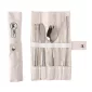 It's the perfect lunch accessory for those brown baggin' it. Sturdy stainless steel material is durable & long lasting. Set includes two chop sticks, one straw with a cleaning brush, one knife & one spork. The set comes in a handy jute case that holds the utensils in place & rolls up. Great for camping, hiking, & every day! Complies with Prop 65. 2" W x 10" L x 1" H