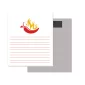 50 Page Magnetic Note-Pad. Offset printed in 2 custom Pantone colours at 133 lpi. Stock Rectangular shape (3.5"x4.25") with square corners, no bleed edge. 3.5" W x 4.25" L x .275" Thick