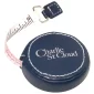 Round, Cowhide, Bonded Leather, Press Release, Padded Case, Accent Stitch, Measure Item, 60" Tape, Locking, Fabric Measuring, Inch Scale, Cm Scale. 2" Diameter x 0.625" D