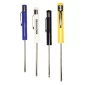 Plastic round colored barrel screwdriver with Phillips blade & metal pocket clip. 5 1/2" approximate length includes 2 1/2"-2 3/4" blade. 5 1/2" L x 2 1/2" W x 2 3/4" H