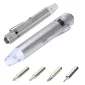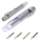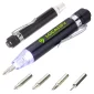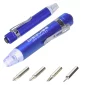 Quick-Reach 4-Bit Screwdriver set includes 2 flat head bits and 2 Phillips head bits. The LED light in tip provides better visibility for using around the house, travel or training class. Secure in a pocket of a bag or clothes with the metal clip. Accessing the bits is easy with the non-slip knurled cap that unscrews. Showcase your brand as a helpful hand, with your logo imprinted on the barrel of this multi-purpose screwdriver set. Complies with Prop 65. 3.75" H x 0.625" Diameter