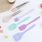 The material of this set of baking tools is stainless steel + silicone. Contains six tools: drain spatula, frying spatula, spatula, oil sweep, egg beater, and food tongs. It is coated with heat-resistant silicone and can handle high-temperature applications or simple daily tasks. The company's logo and pattern can be printed very well. 8" L x 3.4" W