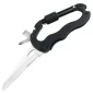 The material of this multi functional carabiners is aluminum alloy + stainless steel. It consists of a flat-blade screwdriver, a Phillips screwdriver, a half-toothed knife, a screw lock and a bottle opener. easy to carry. Very suitable for outdoor use. The shape of the logo can be customized. 4.5" L x 2.5" W x 0.5" H