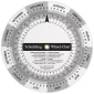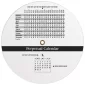 .020 Custom Imprinted White Gloss Vinyl Plastic Wheel Calculator / Perpetual Calendar & Scheduling Calculator (4.25" dia.). Digitally printed in high resolution 4 colour process on front and Black on back - includes varnish. 4.25" Diameter x .02" Thick