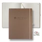 Have little impact on the world's resource while generating big gains in your business with this ApPeel® Grande Journal. Paper made from apple pulp and fibers that have been emulsified into an organic material, this item is eco & animal-friendly, sustainable and all natural. Featuring 192 lined pages, gold ribbon marker, striped endpages, back pocket, elastic closure and pen loop. Additional Set Up Charges for Personalizations and Tip-in's. Quote upon request. Complies with FSC, Oeko-Tex Std 100, Prop 65, REACH, USDA. 7 11/16" W x 9 15/16" H